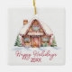 Happy Holidays Gingerbread House Ceramic Ornament