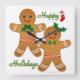 Happy Holidays Gingerbread Man Boy Girl Square Wall Clock