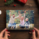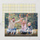 Happy Holidays Gold Calligraphy Winter Plaid Holiday Card