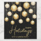 Happy Holidays and your names accented by elegant gold and white Christmas tree ornaments on a black background. Personalize these wine bottle labels to give as gifts or to serve at your holiday dinner party, corporate Christmas party, holiday wedding engagement party and more. MATCHING items in our collection.