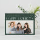 Elevate your corporate holiday greetings with this "Happy Holidays" card, designed for spreading cheer and fostering a sense of unity. The front features a sleek "Happy Holidays" message set against a backdrop of dark green, providing the ideal canvas for a long horizontal photo—perfect for showcasing your team's camaraderie. Turn the card over, and you'll find ample space for two additional photos capturing memorable moments, along with a short, personalized message.