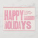 Happy Holidays Letterpress printed postcard pink