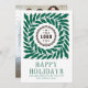 Happy Holidays Logo Modern Script Corporate Photo Holiday Cards Seasonal Cards Christmas Cards features a bold green leaf frame accented with soft pink dots with your company logo in the center with the text "Happy Holidays" in modern typography script. On the reverse add your favorite photo. Perfect for corporate clients for Christmas and the holidays. Created by Evco Studio www.zazzle.com/store/evcostudio