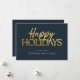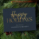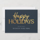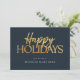 Happy Holidays Modern Blue Gold Script Business Holiday Card