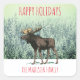 Happy Holidays Moose In Snow Custom Family Name Square Sticker