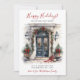 This watercolor Happy Holidays new home for the holidays announcement card with a festively decorated front door with pine boughs and trees, a wreath, and red holiday bows would be perfect to send to your friends and family now that you have moved to a new home. The sentiment is customizable. Get enough so that everyone you know and love has your new address. They'll be so excited about your big move!