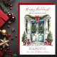 This watercolor Happy Holidays new home for the holidays announcement card with a festively decorated front door with pine boughs and trees, a wreath, and red holiday bows would be perfect to send to your friends and family now that you have moved to a new home. The sentiment is customizable. Get enough so that everyone you know and love has your new address. They'll be so excited about your big move!