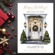 This watercolor Happy Holidays new home for the holidays announcement card with a festively decorated front door with pine boughs and trees, a wreath, and red holiday bows would be perfect to send to your friends and family now that you have moved to a new home. The sentiment is customizable. Get enough so that everyone you know and love has your new address. They'll be so excited about your big move!