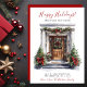This watercolor Happy Holidays new home for the holidays announcement card with a festively decorated wood front door with pine garland, trees, a wreath, and red holiday bows would be perfect to send to your friends and family now that you have moved to a new home. The sentiment is customizable. Get enough so that everyone you know and love has your new address. They'll be so excited about your big move!