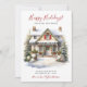 This watercolor Happy Holidays new home for the holidays announcement card with a festively decorated cottage with pine boughs, a wreath, red bows and trees would be perfect to send to your friends and family now that you have moved to a new home. The sentiment is customizable. Get enough so that everyone you know and love has your new address. They'll be so excited about your big move!