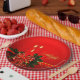 Add warmth and festivity to your home. Decorate your Christmas table with this chic and stylish paper plate that features three red candles, red and gold bow and christmas green leaves on a red background. Please feel free to customize it any way you want!