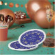 Beautiful, original hand painted artwork and graphic design by Audrey Jeanne Roberts has a rich royal blue background with white snowflakes and banner that says "Let it Snow." Cute, whimsical modern style reindeer are leaping into the sky to celebrate the joy of the season. Add the matching napkins and this decorative set will make for a festive occasion at any Christmas party, Business Corporate event or family gathering you might be hosting. Your family name, business name or message is easily changed out using the template field provided.
