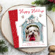 This fun business Happy Holidays card is perfect for vets, dog groomers, pet stores to send to clients, vendors and more. Features "Happy Holidays" and a cute doghouse frame around pet photo. Your business name and info are below. Back of card features your personalized holiday message. Celebrate the season with this happy holiday card from Cherry Lane Designs!