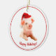 Happy Holidays Pig With Santa Hat Ceramic Ornament