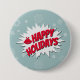 Happy Holidays comic style illustration with Christmas bell and snowflakes decoration on blue background