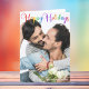 Happy Holidays Rainbow Script LGBTQ Couple Photo Holiday Card