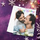 Elegant Happy Holidays photo postcard with beautiful rainbow cursive typography. This modern LGBTQ holiday family photograph postcard features gorgeous script and your name in white over the full bleed picture of an LGBT couple. Personalize with your Christmas message on the back.