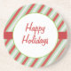 Happy Holidays Red, Green & Grey Stripes Coaster