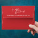 Red and White Modern Holiday Greeting Card Envelope featuring wording 'Happy Holidays' in white modern script font style with address in white modern sans serif font style on red background.