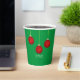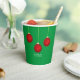A festive holiday design with three bright red ornaments set on a green background. Text and background color can be customized.