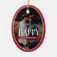 Happy Holidays Red Oval Frame Photo Card Ceramic Ornament