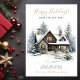 This watercolor Happy Holidays new home for the holidays announcement card with a festively decorated stone and wood home with pine boughs and trees would be perfect to send to your friends and family now that you have moved to your new home. The sentiment is customizable. Get enough so that everyone you know and love has your new address. They'll be so excited about your big move!