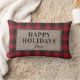 Happy Holidays Rustic Red Buffalo Plaid Burlap Lumbar Pillow