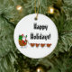 Happy Holidays Santa and Chickens Ceramic Ornament