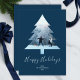 Happy Holidays Simple Blue Christmas Tree Photo Holiday Card