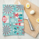 Happy Holidays Teal Blue and Red Pattern Kitchen Towel