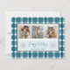 Happy Holidays Teal Plaid Silver Snowflakes Photo Holiday Card