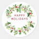 Happy Holidays Watercolor Botanical Christmas Classic Round Sticker
