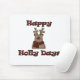 Holiday greeting cards, mugs, tote bags, T-shirts, and more featuring a reindeer in a red checked scarf and text that reads "Happy Holly Days"!