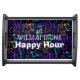 A modern retro pattern in bright hot pink, lime green, orange, turquoise and lime green (not fluorescent) mixed drinks and cocktails on black background. This happy hour serving tray makes a great gift or get for your own home bar, man cave or bonus room. (2 sizes and 2 finishes available - natural and black. MATCHING items in our store.