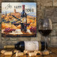 An artistic design wall clock featuring an Italian Tuscan inspired landscape painting with red wine. Beautiful for any wine lover.