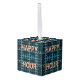 Happy Hour Text Blue Vector Art Print Cube Ornament