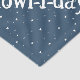 "Happy Howl-i-idays" text on a blue background with white stars.