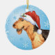 Celebrate the holiday season with a happy Airedale Terrier wearing a Santa hat. Great holiday gift idea for Airedale-loving family and friends. Happy Howlidays!