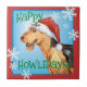 Celebrate the holiday season with a happy Airedale Terrier wearing a Santa hat surrounded by snowflakes and the words, Happy Howlidays! Great holiday gift idea for Airedale-loving family and friends.