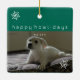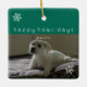 Festive Green Happy Howlidays Add Your Pet's Photo and Name Ornament with Pretty Snowflakes.