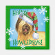 Celebrate the holiday season with a happy Briard wearing a stocking hat surrounded by snowflakes and the words, Happy Howlidays! Great holiday gift idea for Briard-loving family and friends.