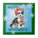 Celebrate the holiday season with a cute Siberian Husky puppy wearing a Santa hat and scarf amid snowflakes and the words, Happy Howlidays! Great holiday gift idea for Husky-loving family and friends.