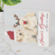 This holiday design features a photo of two Golden Retriever puppies wearing red Christmas hats and the text "Season's Greetings" written in popular red typography with a your text added below. To personalized you are able to add your own photo and edit or delete the text.