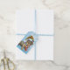 Celebrate the holiday season with a present decorated with a gift tag with a cute Wirehaired Dachshund wearing a stocking hat and scarf amid snowflakes! Great for giving to Doxie-loving family and friends.