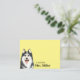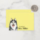 Personalized note cards with watercolor illustration of a happy Siberian Husky dog and customizable text on sunny yellow background