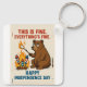 This humorous design features a distressed bear attempting to roast a marshmallow on a bonfire fueled by fireworks, with the caption "THIS IS FINE. EVERYTHING'S FINE." Below, "HAPPY INDEPENDENCE DAY" adds a touch of ironic celebration. This graphic is perfect for those who enjoy a playful take on holiday mishaps.