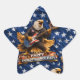 Add some rock 'n' roll flair to your patriotic celebrations with these unique star shaped stickers featuring a bold bald eagle shredding an electric guitar against a Star-Spangled Banner each star cut out captures the high energy happy independence Day spirit