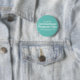 March 8th is International Women's Day button. Turquoise and white button to celebrate women's equality with hashtag #InspireInclusion.