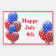 Yard sign shown in a festive July Fourth balloons print.