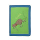 Happy jumping kiwi with bow tie cartoon design trifold wallet